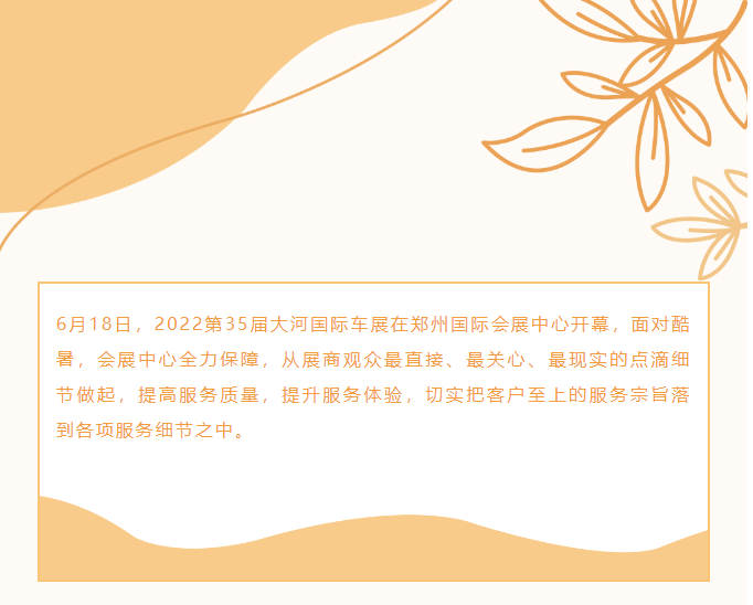 首頁新聞中心展會(huì)新聞文章詳情 文章詳情 用心服務(wù)每一展 6月18日,2022第35屆大河國際車展在鄭州國際會(huì)展中心開幕,面對酷暑,會(huì)展中心全力保障,從展商觀眾最直接、最關(guān)心、最現(xiàn)實(shí)的點(diǎn)滴細(xì)節(jié)做起,提高服務(wù)質(zhì)量,提升服務(wù)體驗(yàn),切實(shí)把客戶至上的服務(wù)宗旨落到各項(xiàng)服務(wù)細(xì)節(jié)之中。