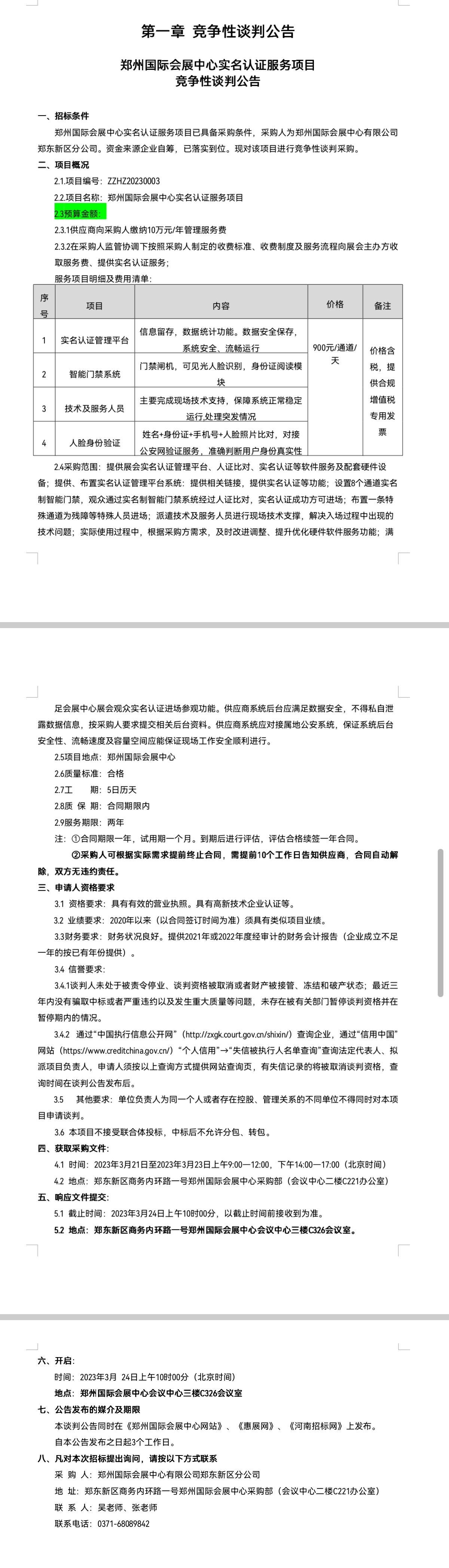 鄭州國際會展中心實名認(rèn)證服務(wù)項目 競爭性談判公告