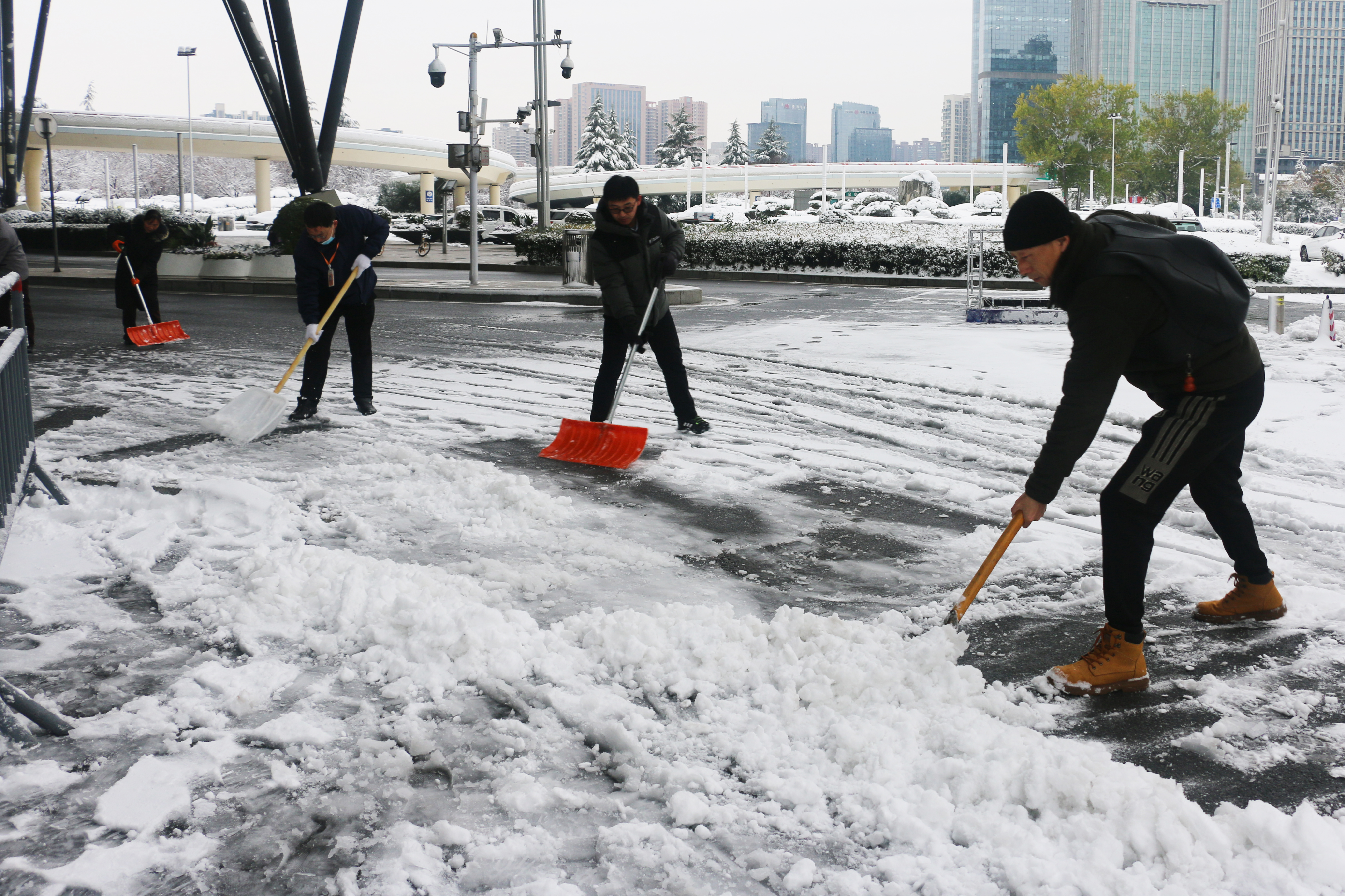 為保障道路暢通方便群眾出行,鄭州國際會展中心在公司管理層帶領(lǐng)下,全體員工集體出動,與屬地管理部門一起清除道路積雪、設(shè)置易滑路面警示帶,保障了道路暢通方便了市民出行。