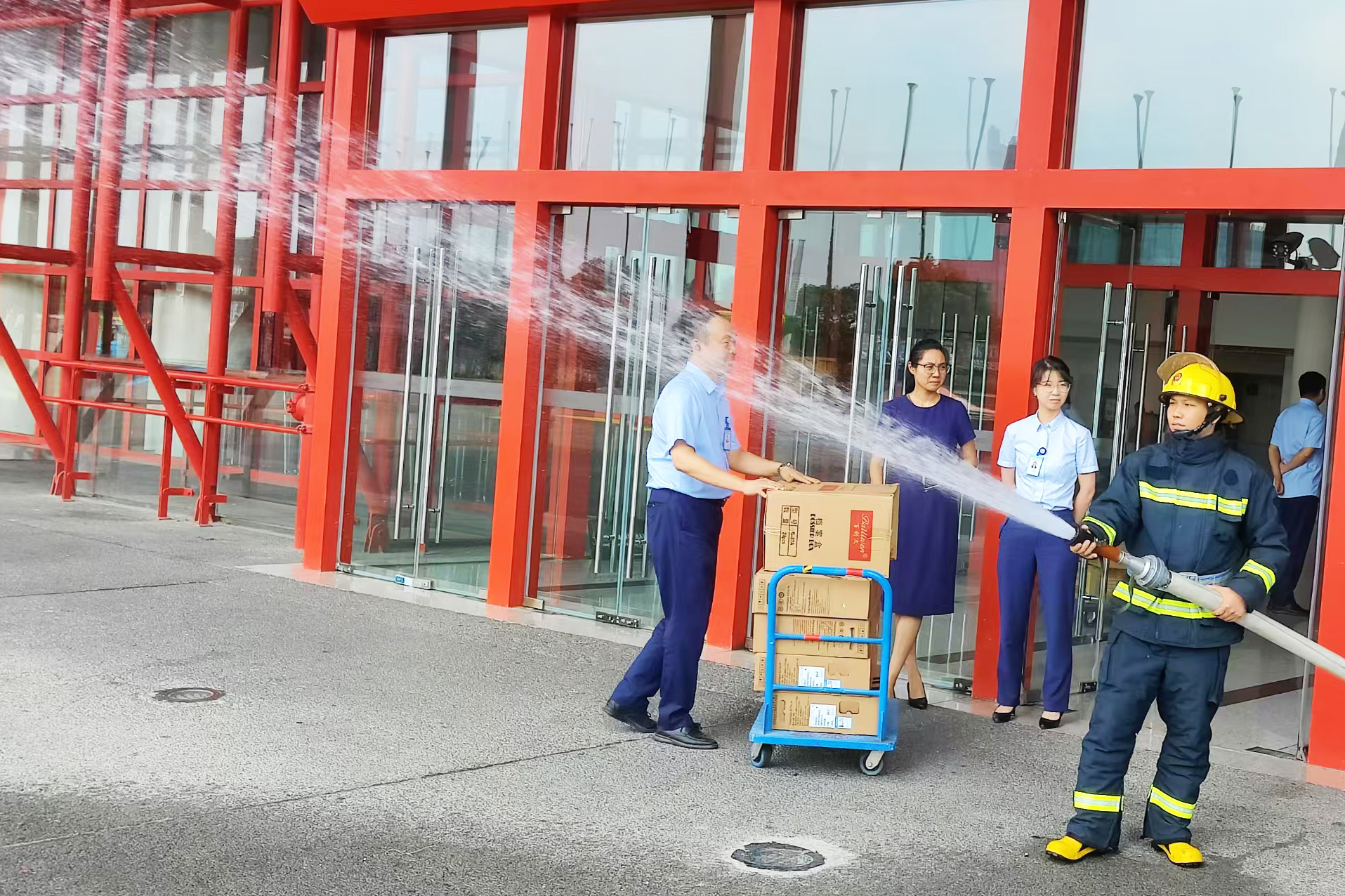 消防演練環(huán)節(jié)在一層展館A區(qū)展開,模擬煙霧升騰的火災(zāi)場景瞬間激活應(yīng)急響應(yīng)機制。滅火行動組沖鋒在前,完成火災(zāi)初期撲救;疏散引導(dǎo)組高效指揮“受困人員”沿安全路線撤離;救護組模擬傷員轉(zhuǎn)運展現(xiàn)人文關(guān)懷;設(shè)備保障組精準觸發(fā)防火卷簾、應(yīng)急廣播等聯(lián)動設(shè)施……六個應(yīng)急小組各司其職又緊密配合,完成從火情處置到人員疏散,重要物品轉(zhuǎn)移清點的全流程演練。