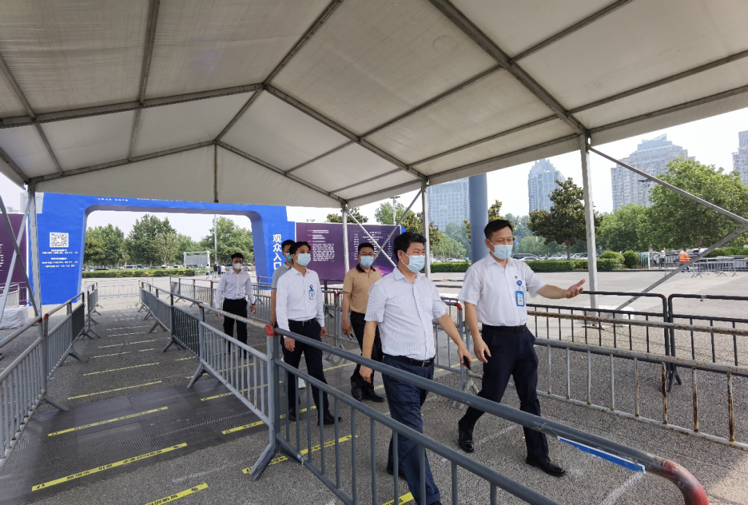 2022年6月9日上午,鄭州市商務(wù)局三級調(diào)研員劉沛濤、國內(nèi)經(jīng)濟(jì)合作處處長馮廣偉一行蒞臨鄭州國際會展中心2022第十一屆中原國際車展現(xiàn)場檢查指導(dǎo)疫情防控工作,為會展中心全面復(fù)工復(fù)產(chǎn)提出要求。鄭州國際會展中心有限公司董事、副總經(jīng)理揭開宇陪同。
